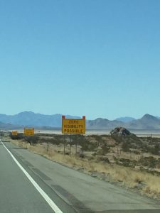 Another “new” signpost for us was the dust storm hazard warning signs aka “haboobs” along the way. When you have lived in one geographic area for a looooooong time, these signs come as an eye-opener for us. My gut would tell me to pull over and put my hazard lights on. This my friends is not the case. You pull over as far as you possibly can, stay belted, and keep your foot off the brake and no emergency lights, because other vehicles may want to follow your lights. If I ever move to the desert I am now informed!