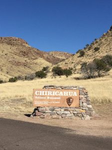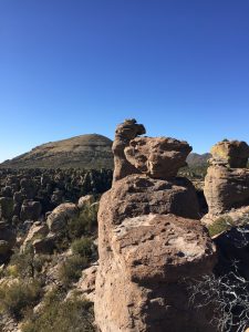 A reminder, we are in Arizona and woke up to 28 degrees. Headed for a picnic lunch at Chiricahua National Monument along the Bonita Canyon Road to enjoy a magnificent view. At 6870’ elevation, the magnificent view was truly that. There is a joy, as Dave reminds me, in seeing those brown “National”….signs, because you just never know what gem you may come across as we did at Chiricahua.