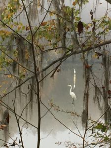 Dave has been quite the sleuth in finding really great campgrounds. Here in Alabama was no exception. A wonderful Army Corp of Engineers place called Praire Creek Campground in Lowndesboro, AL. Place was just so beautiful. After checking in and finding our first assigned site, we quickly found the camp host to see if we could move over. Nuts were hitting Christopher Robin yet again. Remember Beaufort NC. Dave tells the camp host, “We’d like to move sites as the chestnuts are falling like crazy at this site”. Camp host’s response to Dave “Boy….those are hickory nuts…”. We are excited to continue to learn as we travel. Now we know. Two sites over, the “hickory nuts” were not as aggressive and we settled in for a wonderful display of nature on our waterfront site. The egrets and herons flying over and floating in the Alabama River was so beautifully peaceful. Ahhh.