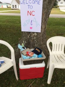 Day two is a rainy and windy one. My friend Deb from Park Ridge High School lives here in Beaufort NC. She has welcomed us in such a big beautiful way. Arranging a site for us at a local marina and leaving for us an amazing basket of local goodies. Wow! Spoiled