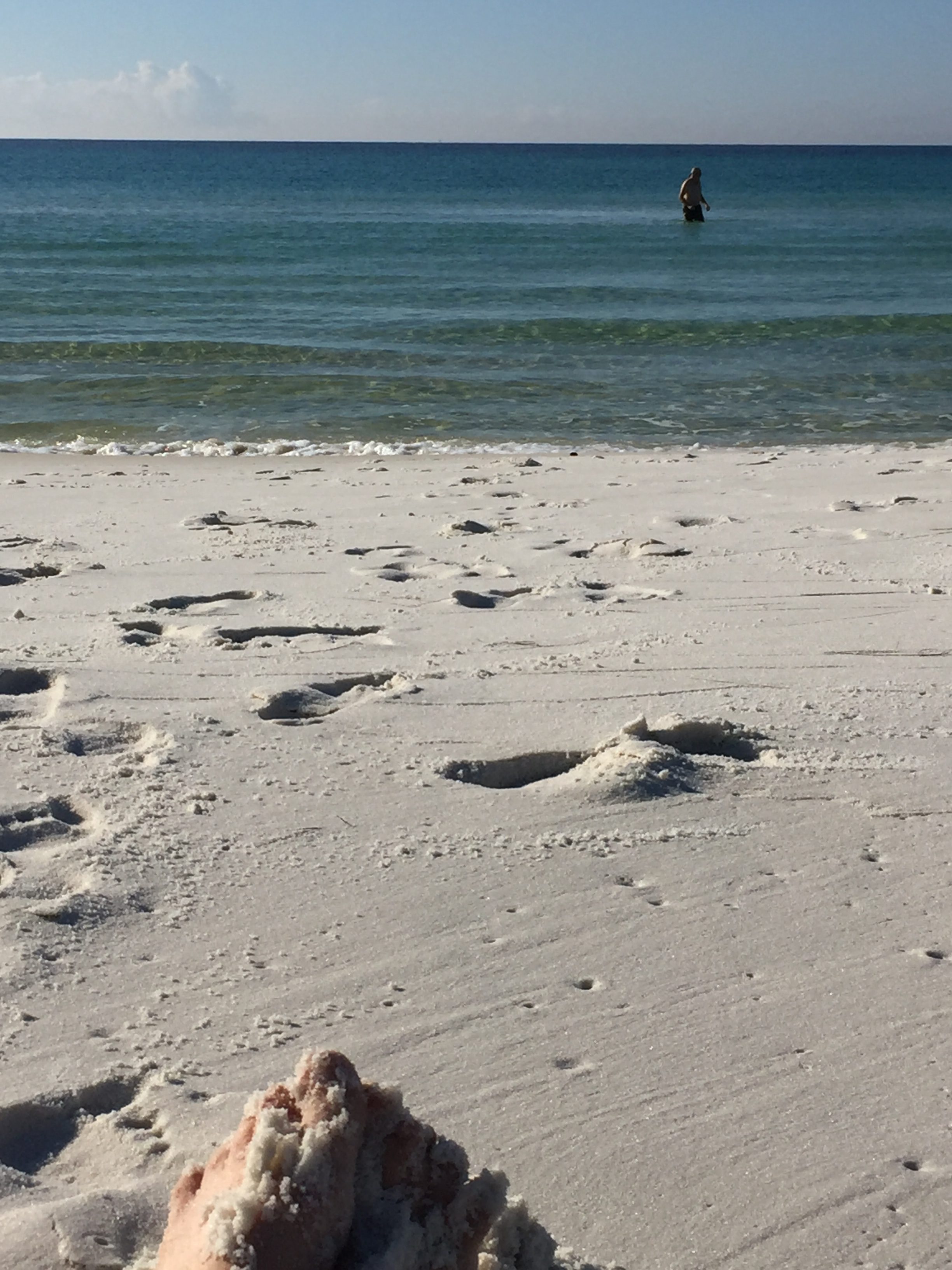 So we got up early, drove over to Henderson Beach State Park. Dave took a much restorative dip in the Gulf of Mexico. Me, I just enjoyed sitting there with my toes dug in the most gorgeous sand, soaking up some sun for an hour. We are beach people. Go figure. And then we moved on. Florida, we will miss you.